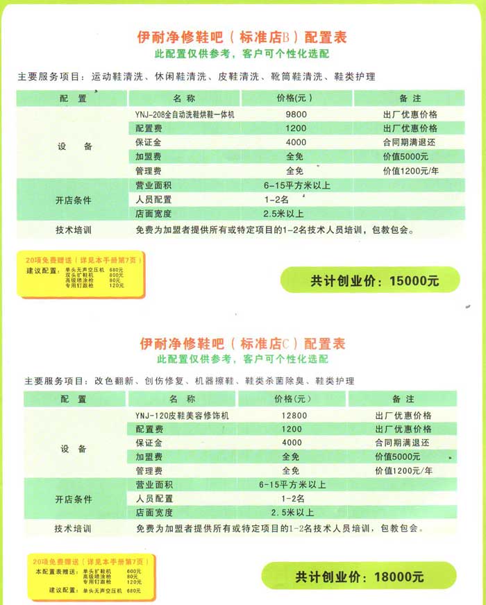 伊耐凈洗鞋(二星店C)配置表