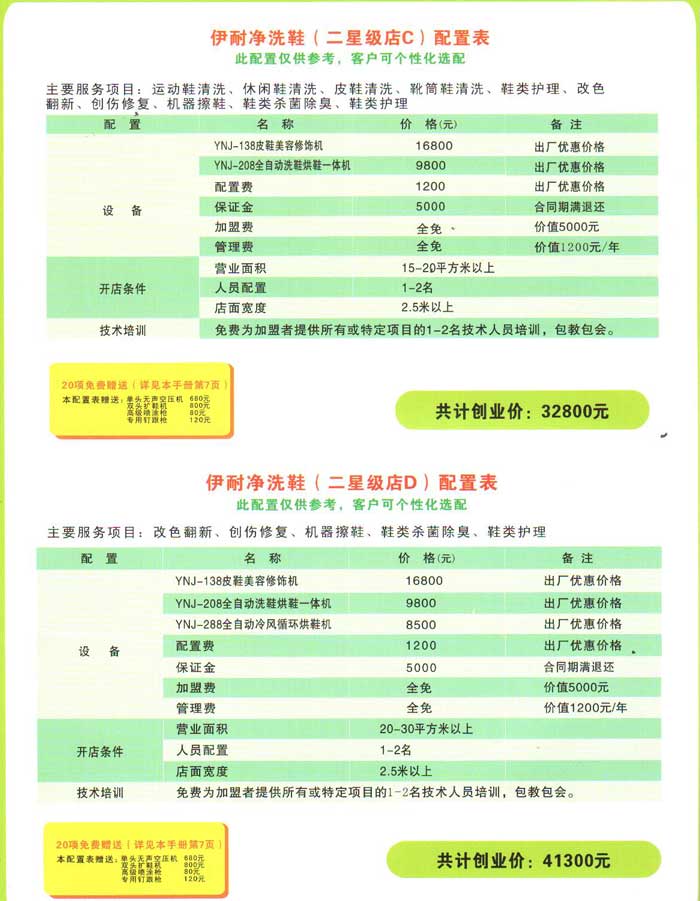 伊耐凈洗鞋(標(biāo)準(zhǔn)店D)配置表